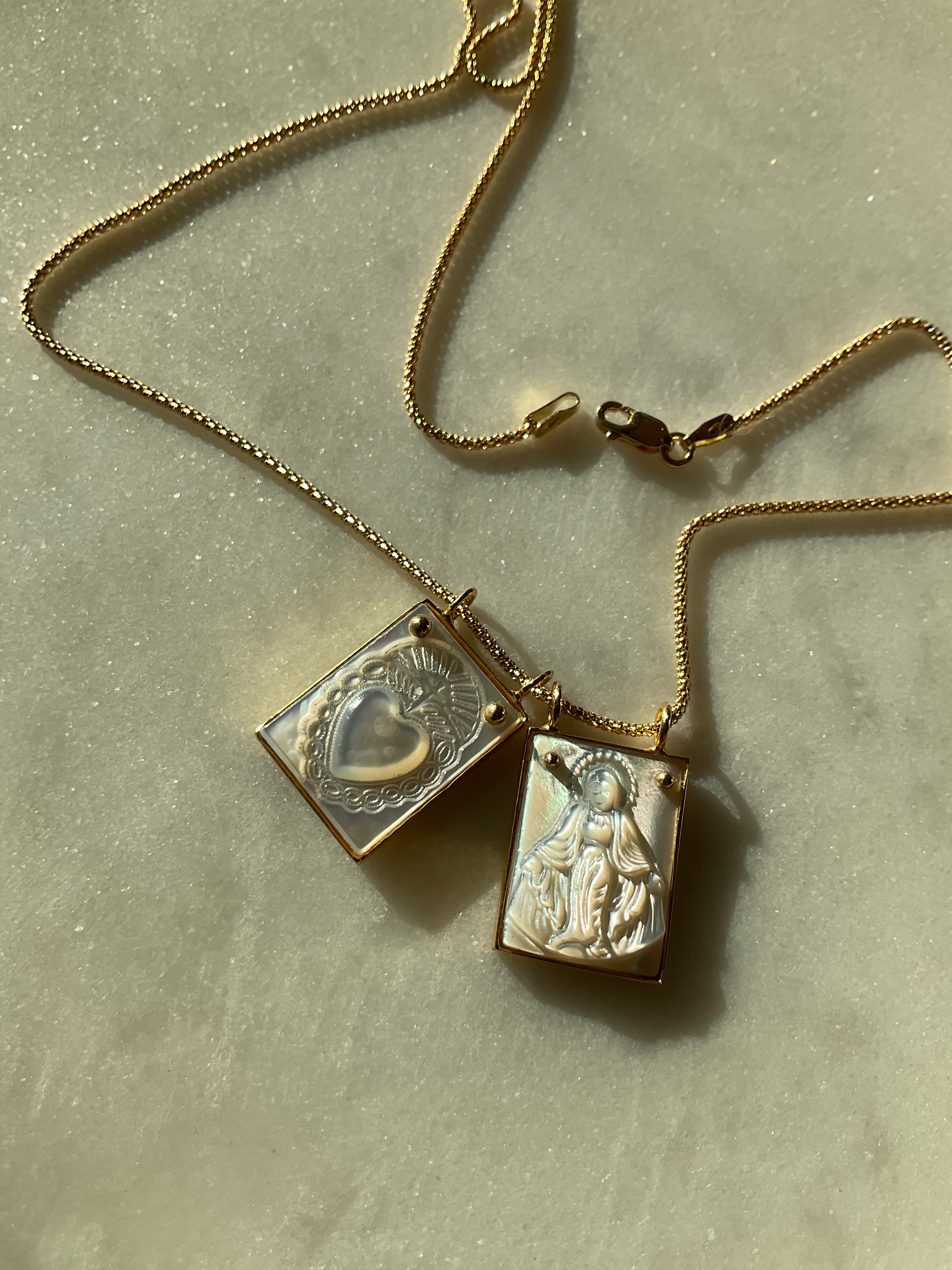 SHOP COLLECTIONOur curated collection of religious jewelry offers timeless keepsakes to hold dear. Solid gold scapulars and pendants, featuring authentic semi-precious stone cameos, embody enduring devotion. Delicate 18K gold chains and gleaming gold-filled rosaries complete the collection, alongside unique coral crosses. Find solace and inspiration in these beautiful expressions of faith.