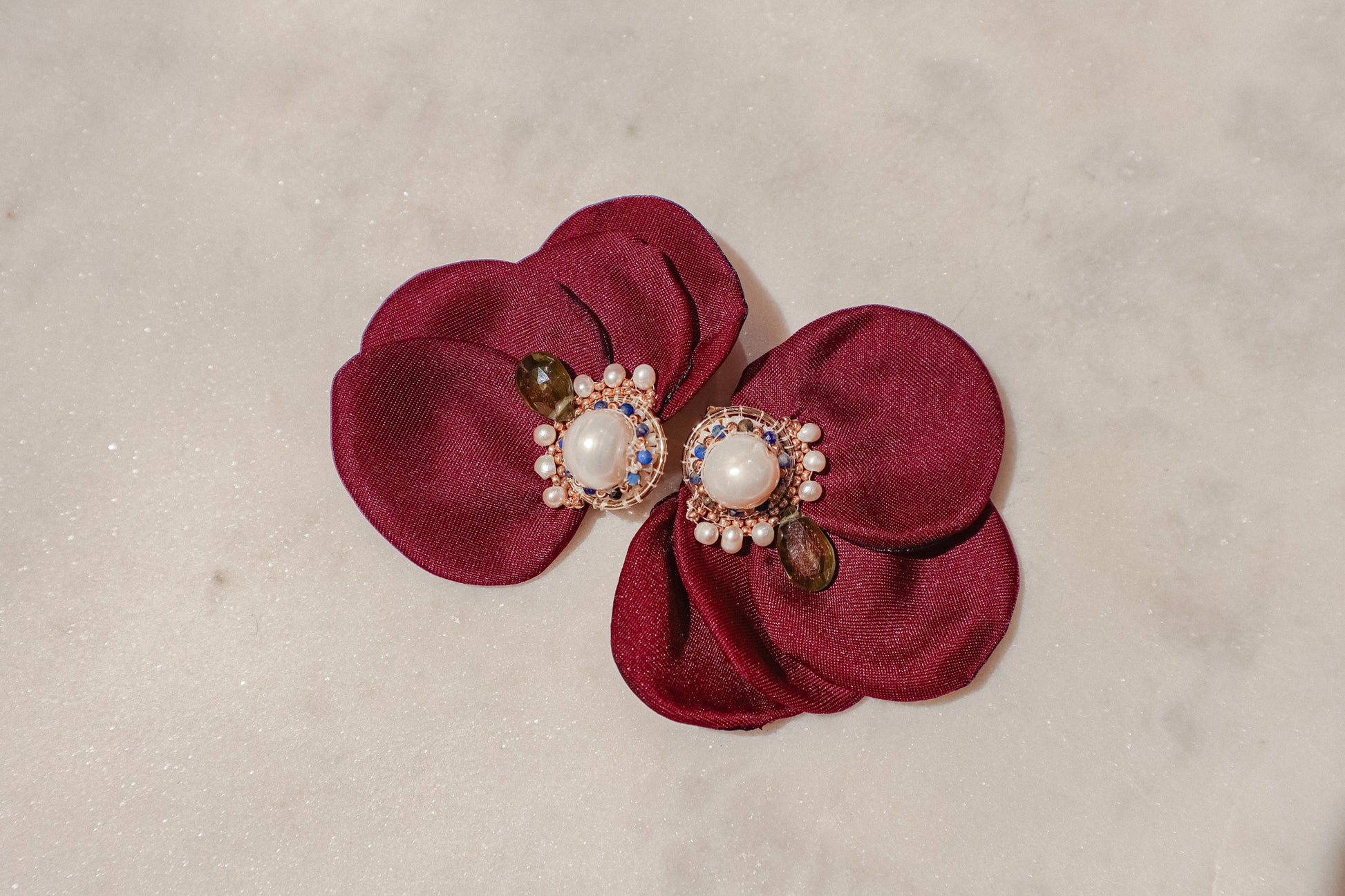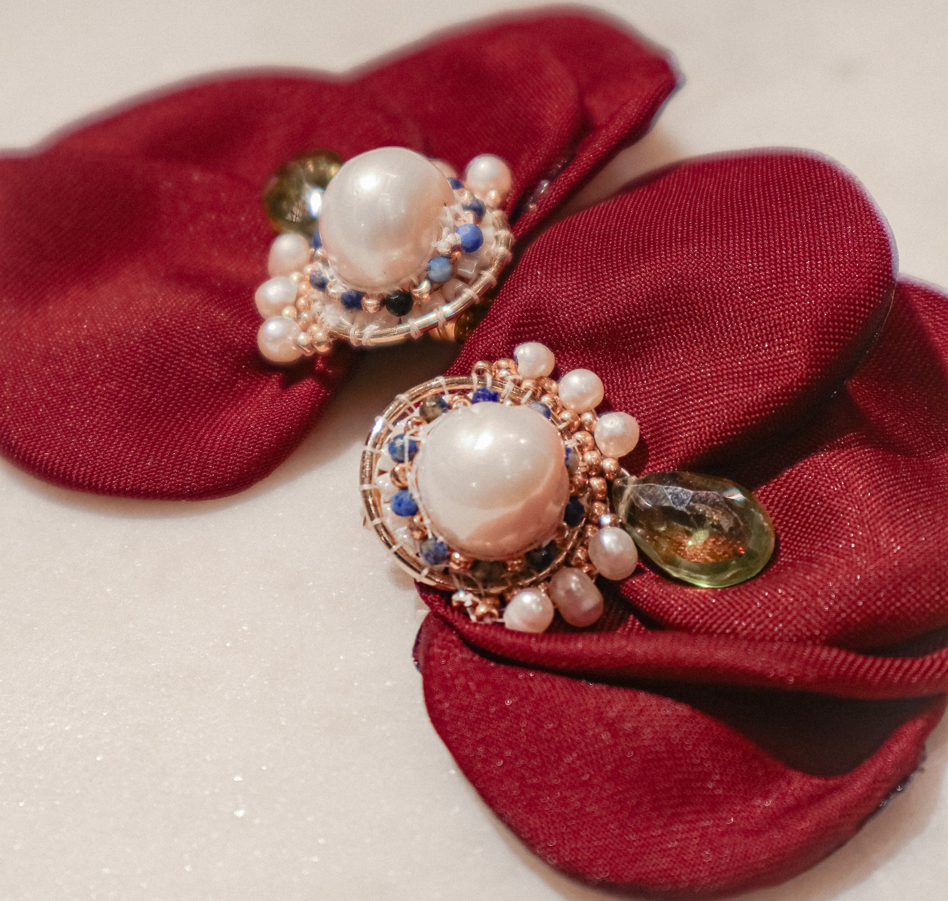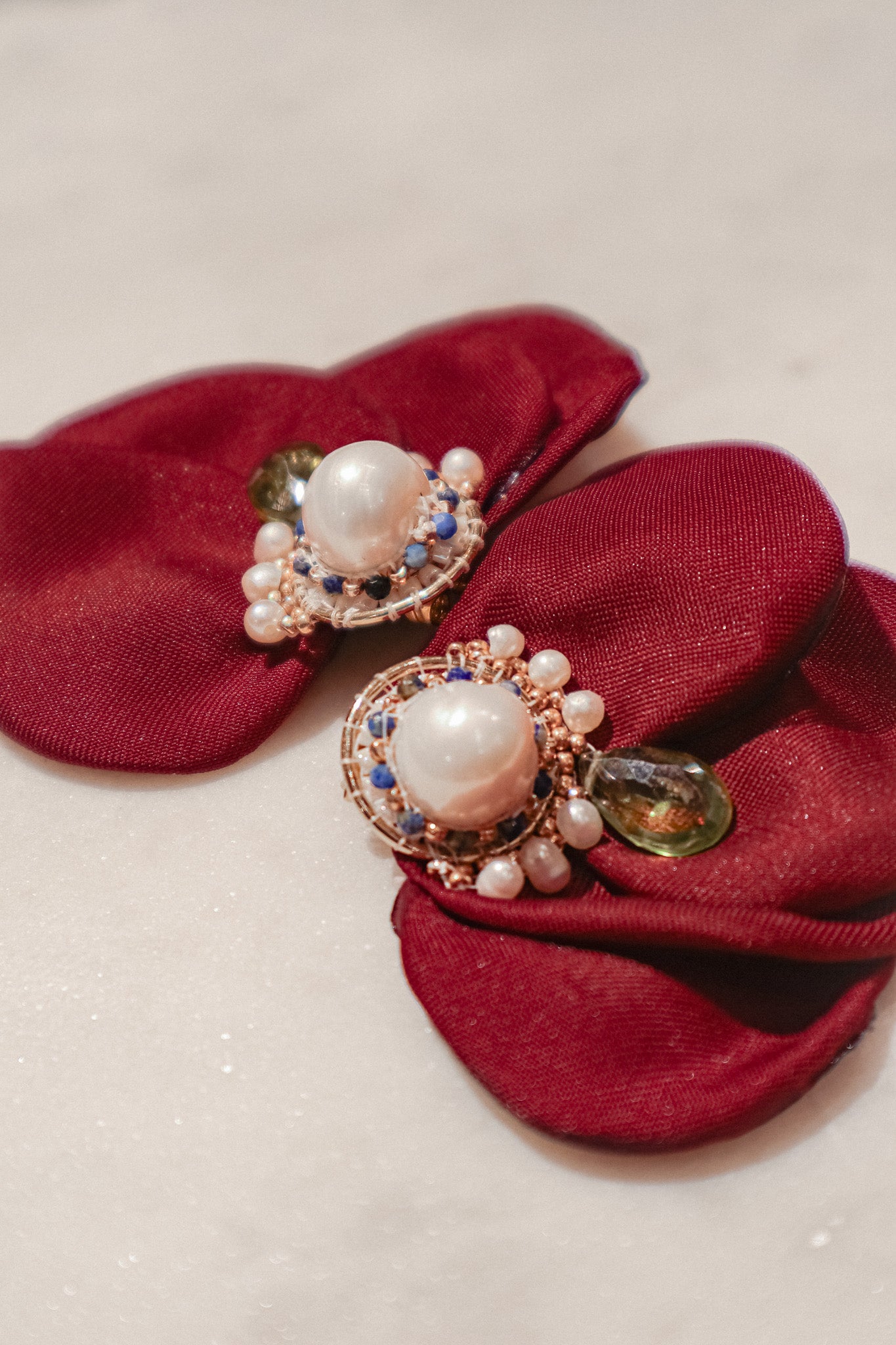 Embrace the timeless beauty of pearls and a touch of earthy intrigue with these captivating Flower Fan earrings. Luminous freshwater pearls and striking lapis lazuli combine to create a captivating contrast. Delicate micro peridot stones, symbolizing growth and renewal, add a touch of vibrancy. Organic Keishi pearls whisper of the ocean's untamed beauty. Secured on gleaming gold-filled posts, these earrings offer a touch of ocean breeze and earthy elegance for any occasion.